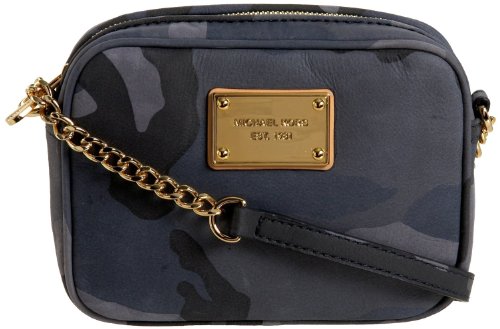 NEW AUTHENTIC MICHAEL KORS JET SET CAMO LEATHER CROSSBODY (Navy/Brass)